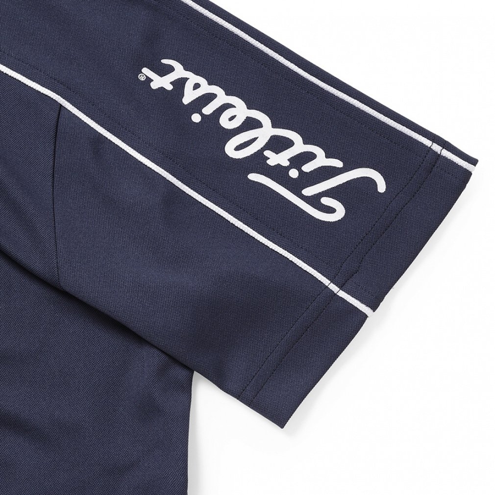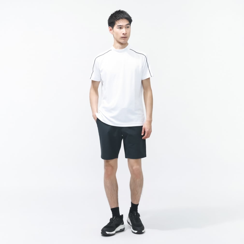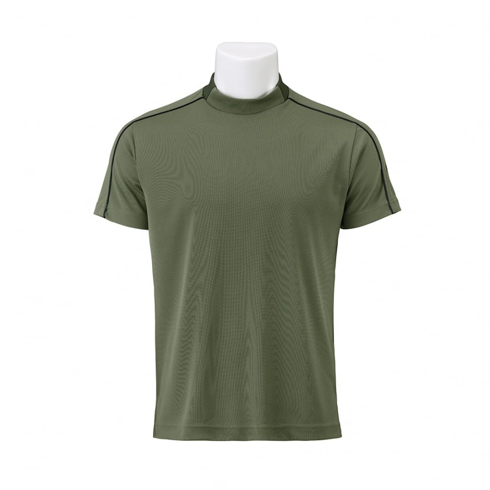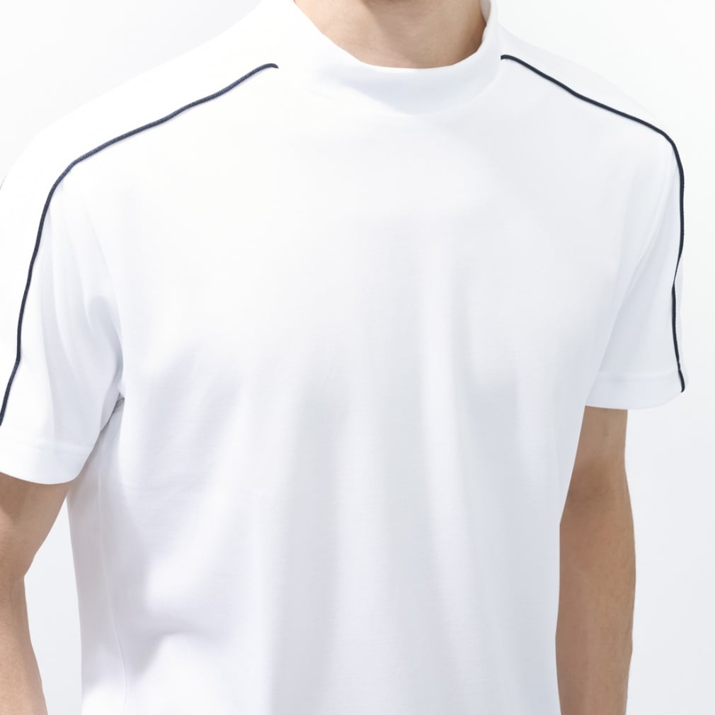 ◇Áo cổ giả (mock neck) với các chi tiết thể thao như cổ áo phối màu, logo in và viền băng keo trên tay áo