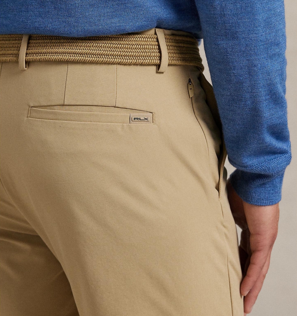 Dáng may đo (Tailored fit): Dáng hơi slim. Có đỉa quần / Dây thun co giãn bên trong eo / Khóa kéo với móc cài dài / Chi tiết cao su RLX trên tab eo. Hai túi chéo phía trước / Túi đựng xu ở hông phải / Túi khóa kéo chìm bên phải / Hai túi hộp phía sau. Nhãn RLX trên túi sau bên phải. Có thể giặt máy.