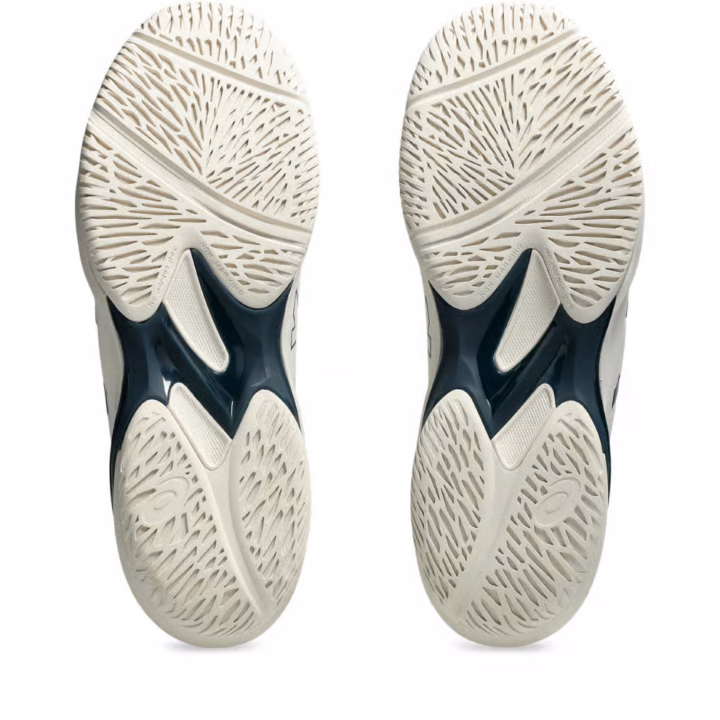 ◇Thiết kế tập trung vào khả năng di chuyển nhanh từ baseline lên lưới và phản ứng linh hoạt với các hướng di chuyển khác nhau. Midsole sử dụng FLYTEFOAM nhẹ, tăng cường đệm êm ái. Phần giữa bàn chân được gia cố bằng tấm TRUSSTIC bằng nhựa, giúp thực hiện nhanh các bước bật và đổi hướng trên sân. Đế ngoài phản ánh thiết kế từ SOLUTION SPEED FF 3, với các rãnh dọc tăng cường lực đẩy khi di chuyển nhanh.